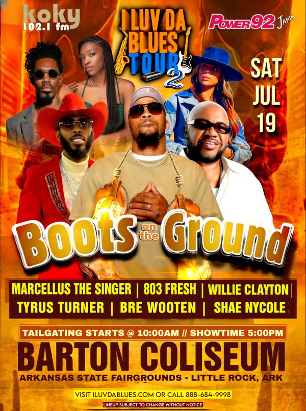 Mark your calendar for the I Luv Da Blues Tour - Dukes & Boots in Little Rock, Arkansas. Tailgating starts at 10:00 am. This event will feature an incredible lineup, including our featured artists. Join us for an unforgettable night of live blues music and celebration with fellow fans.